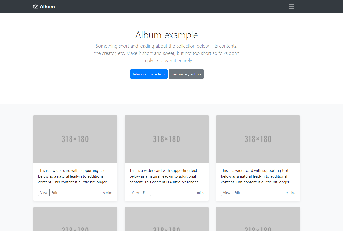 This is a work in progress to convert the Bootstrap 4 Album Template to React using create-react-app and the reactstrap library! I welcome contributions, please see below for details.