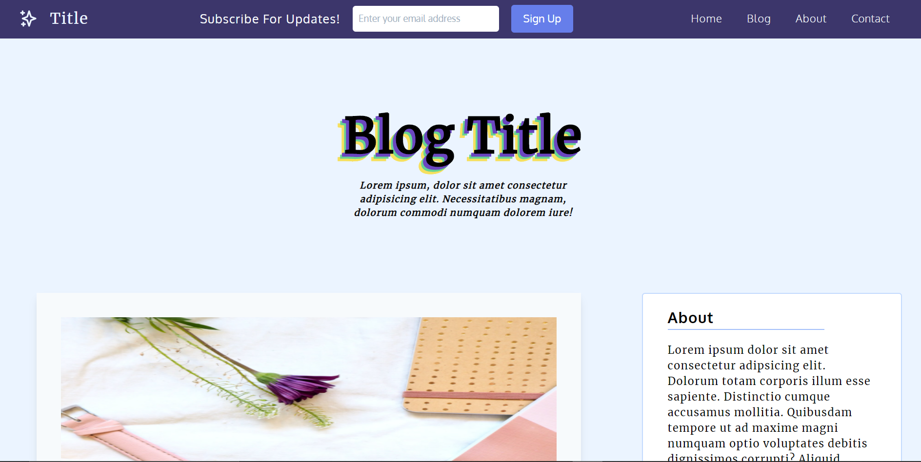 📷 Tailwind Blog Template built with TailwindCSS Mobile Responsive Homepage has Featured Post with Sidebar (About Section and Instagram Feed) Card grid displaying recent posts Passes Axe beta and Lighthouse tests - Homepage - - Sign Up Section - - Recent Posts - - Footer -