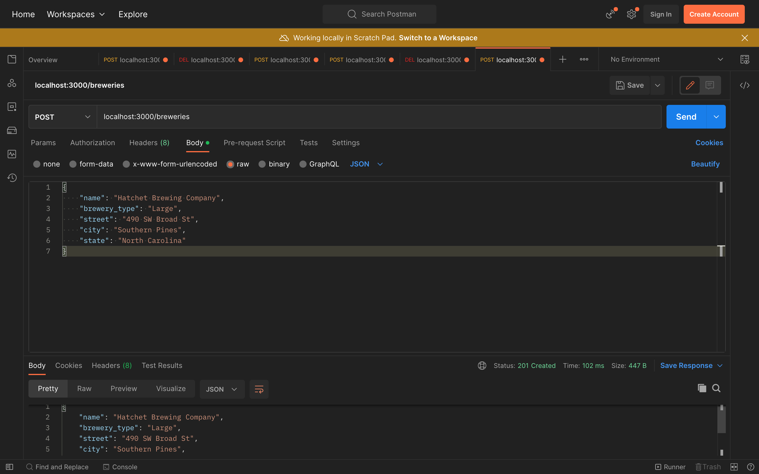 This is a JSON API built from the ground up using mongoose and express. The breweries JSON API has complete CRUD functionality with RESTful routes.