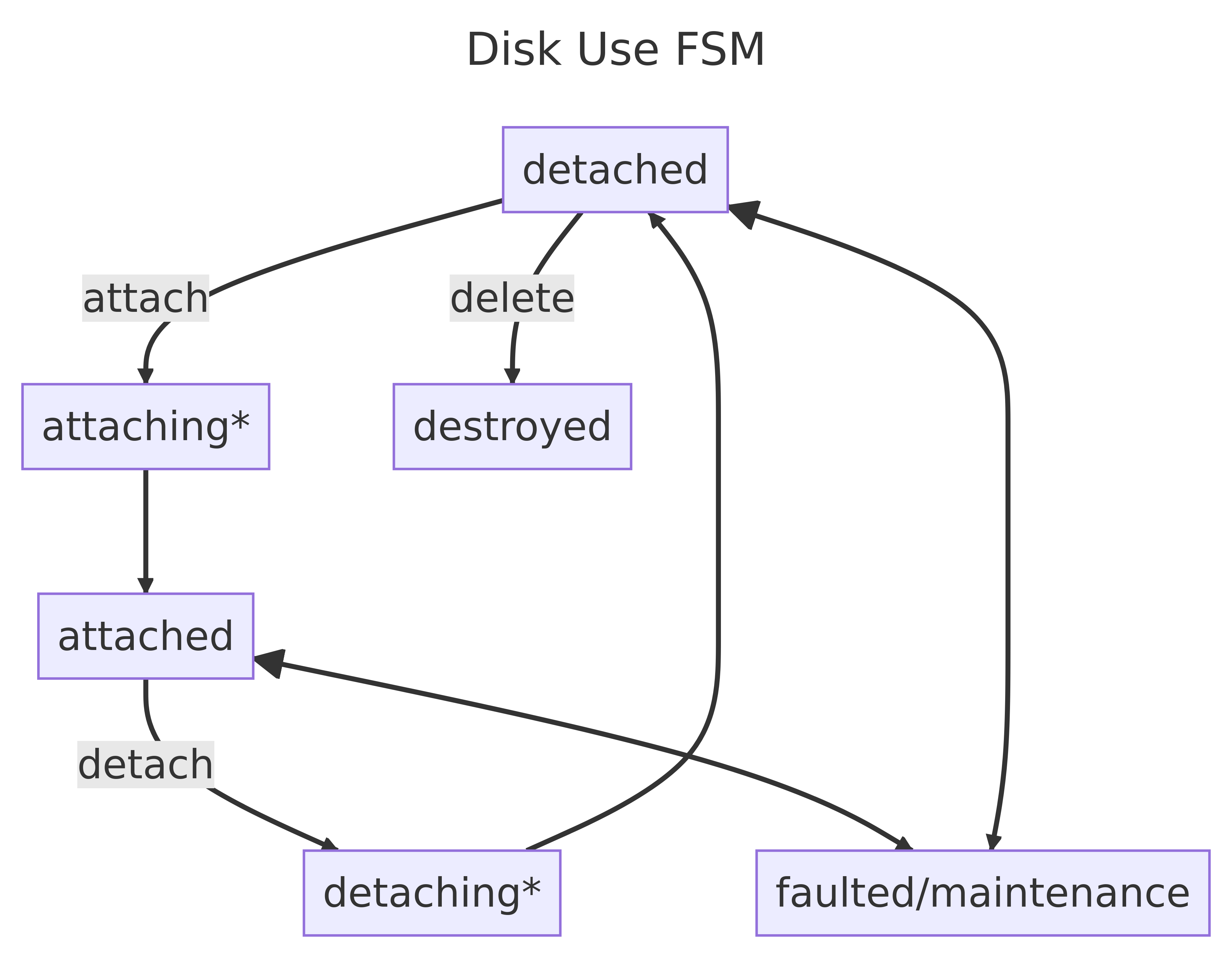 I've putting this as a post-MVP requirement and will document the disk state diagrams like the following in the user guide and augment them with instructions for handling disk deletion.
