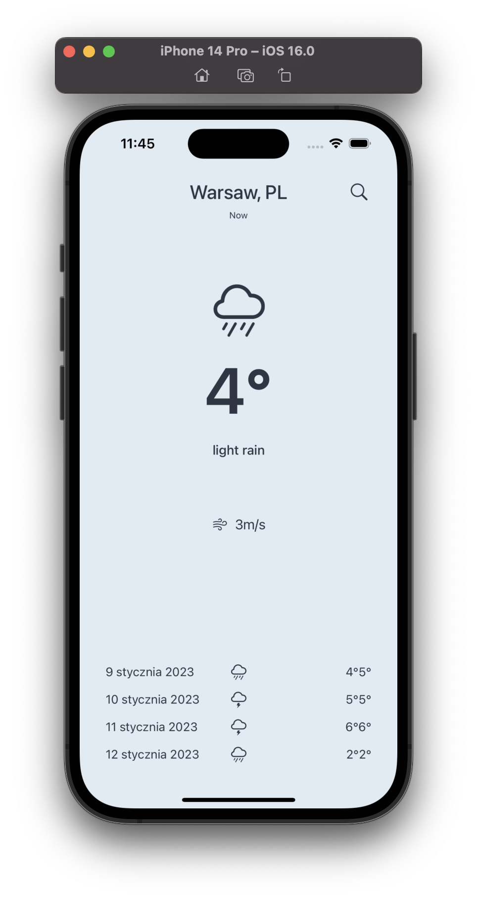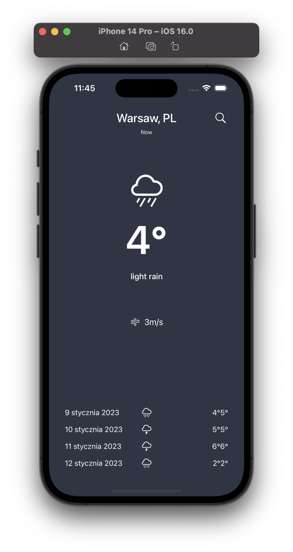 In the app you can check weather, search new places and see search history if search textField is empty.