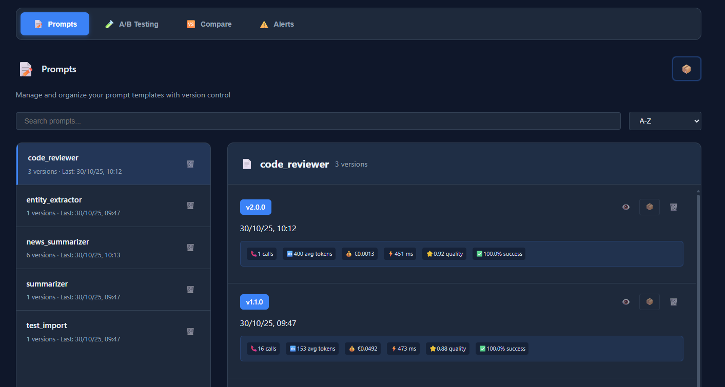 Prompt Versioner provides enterprise-grade prompt management with: