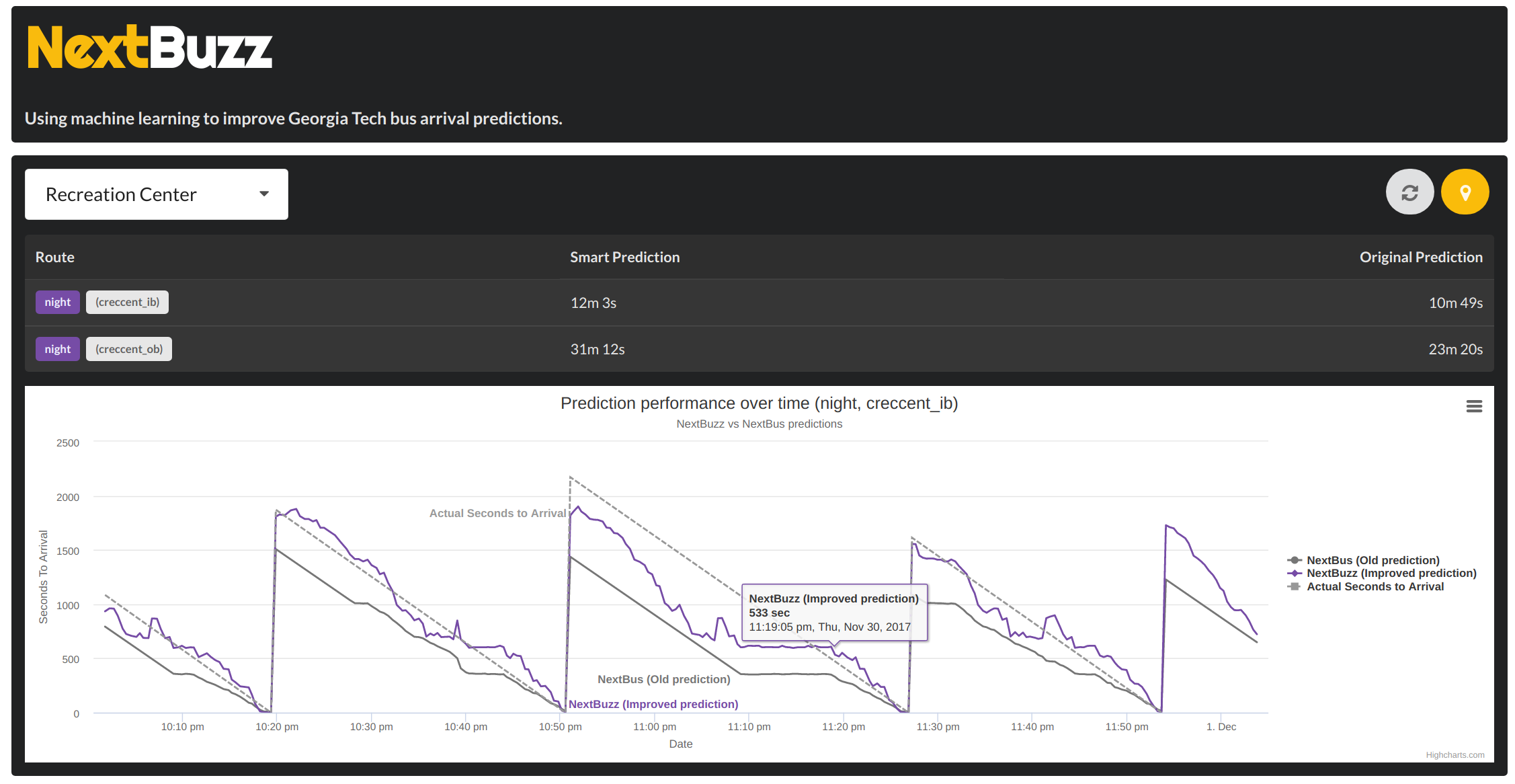 One of the central features of NextBuzz is its data collection script, which will query NextBus and OpenWeatherMap for