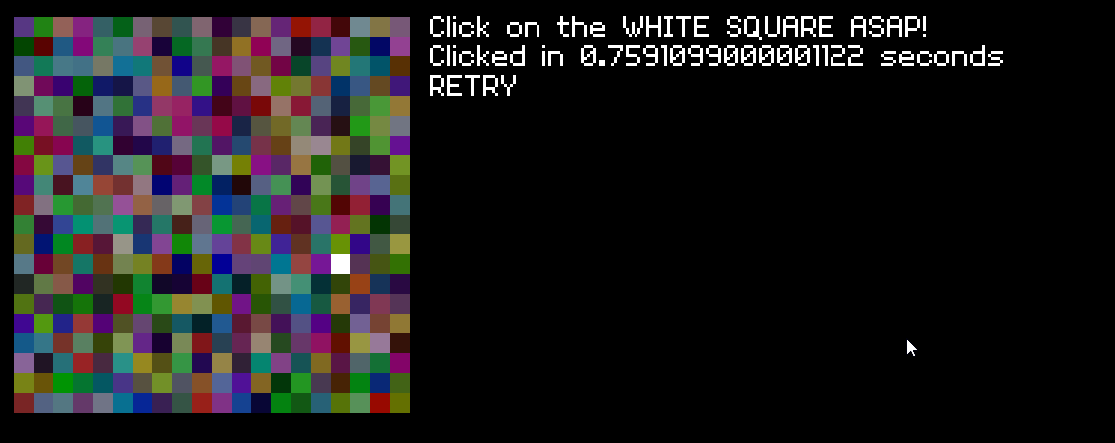 Click on the white square as soon as it appears, and test how fast you are!