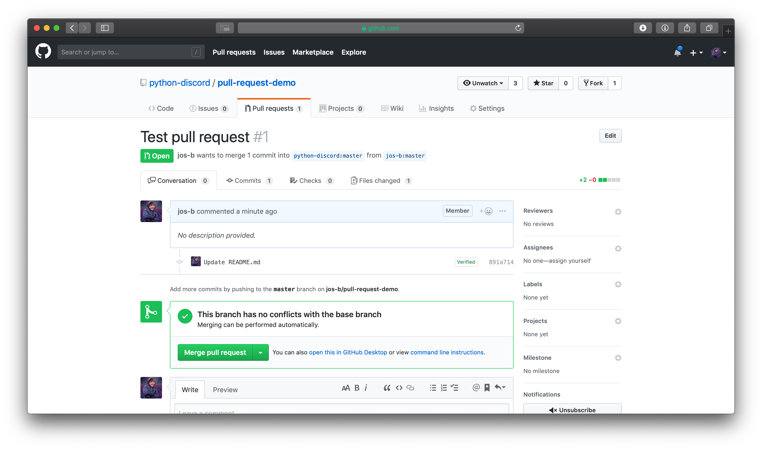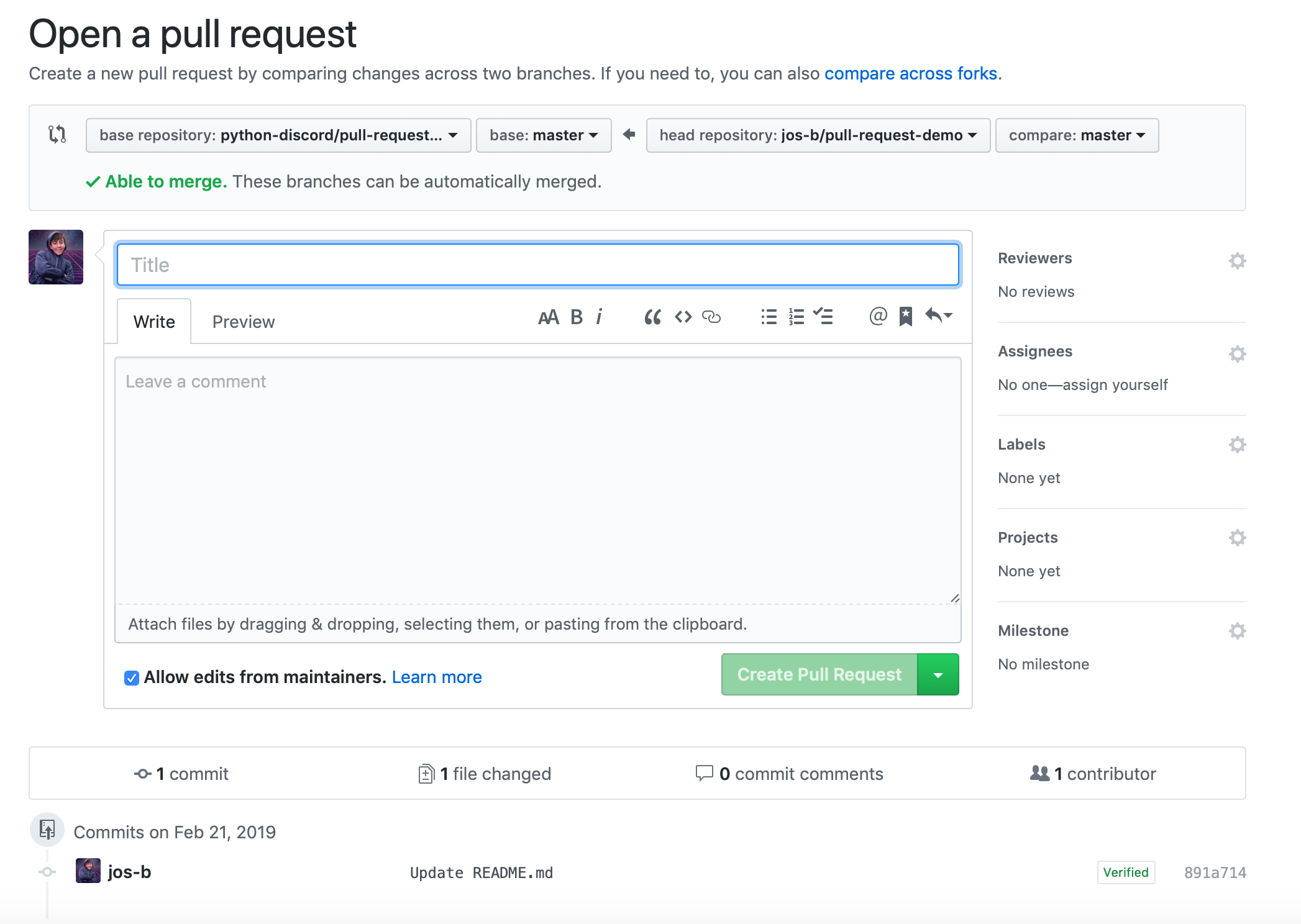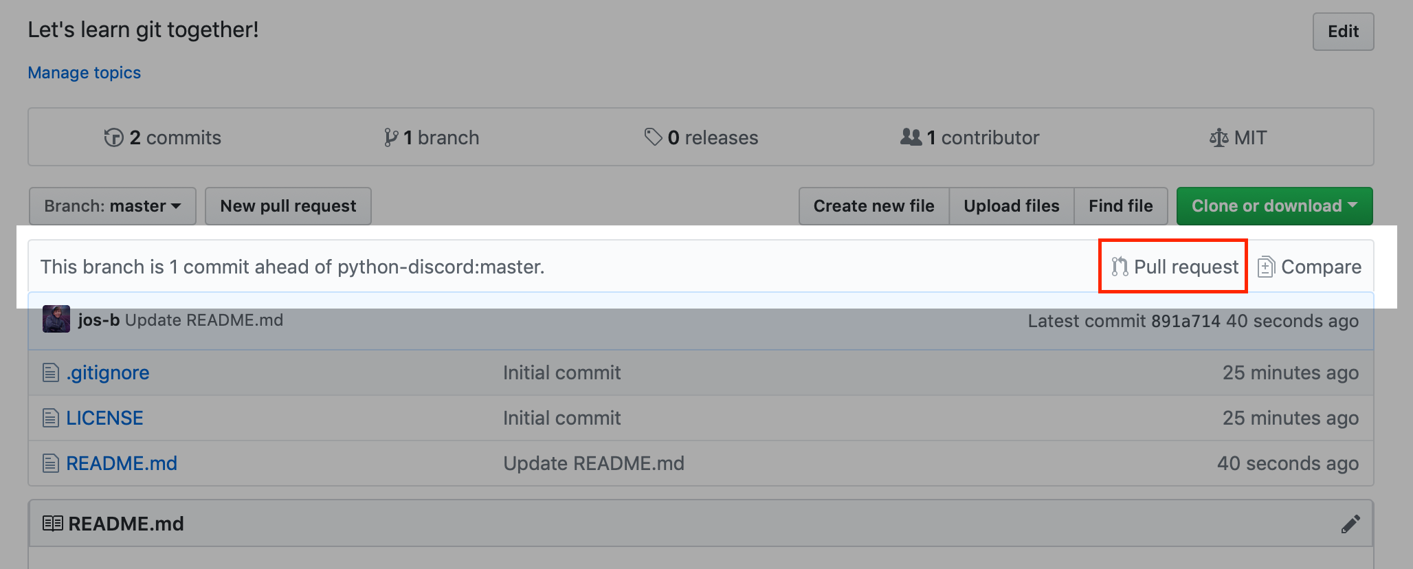 Before we can open a Pull Request you need to have something to actually compare against the brief repo.