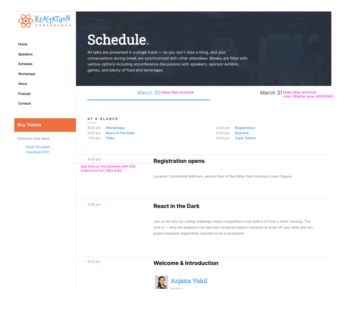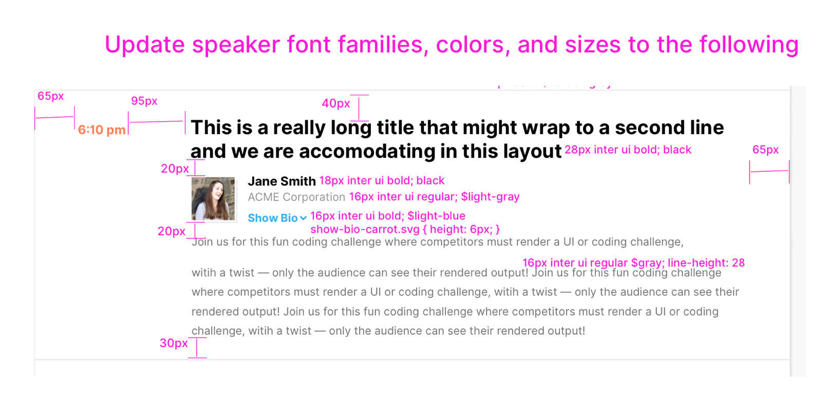 And also update the fonts and styles of the speaker line item. These styles are also in the PDF design templates.