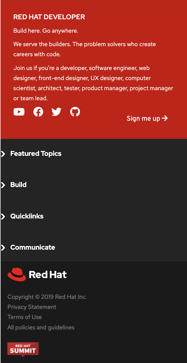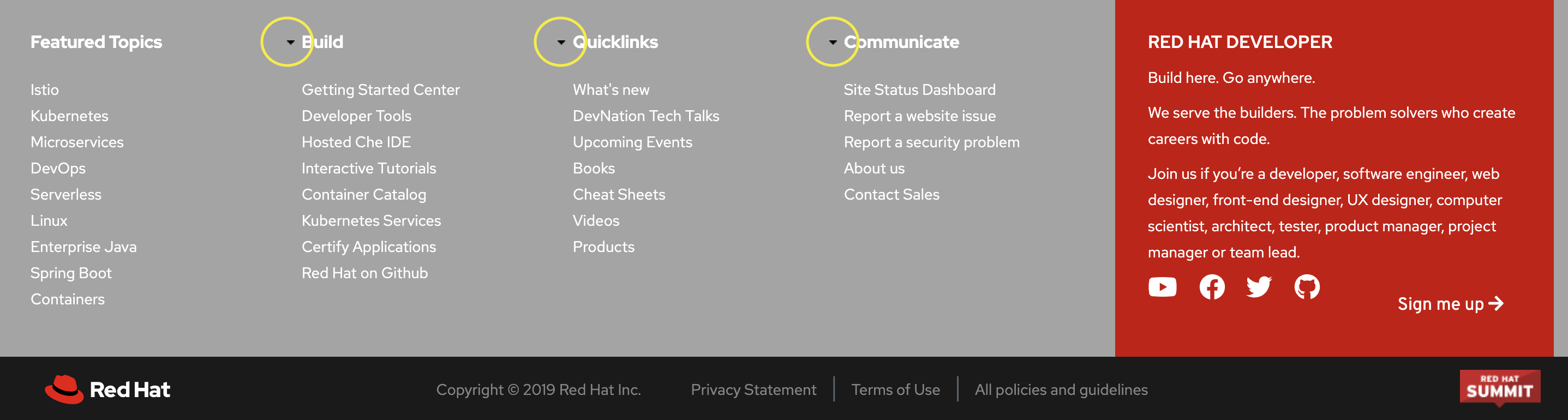 - [ ] Random carets being displayed to the left of the link columns (I changed the footer background color in the screenshot so the icons are more visible)  - [ ] Left margin missing from middle section on mobile views