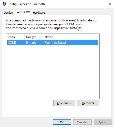 0 - configure a porta COM de entrada para algum dispositivo Bluetooth;