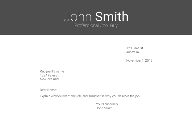 This letter class uses the same eye catching header as the Friggeri CV, and uses the Roboto font.