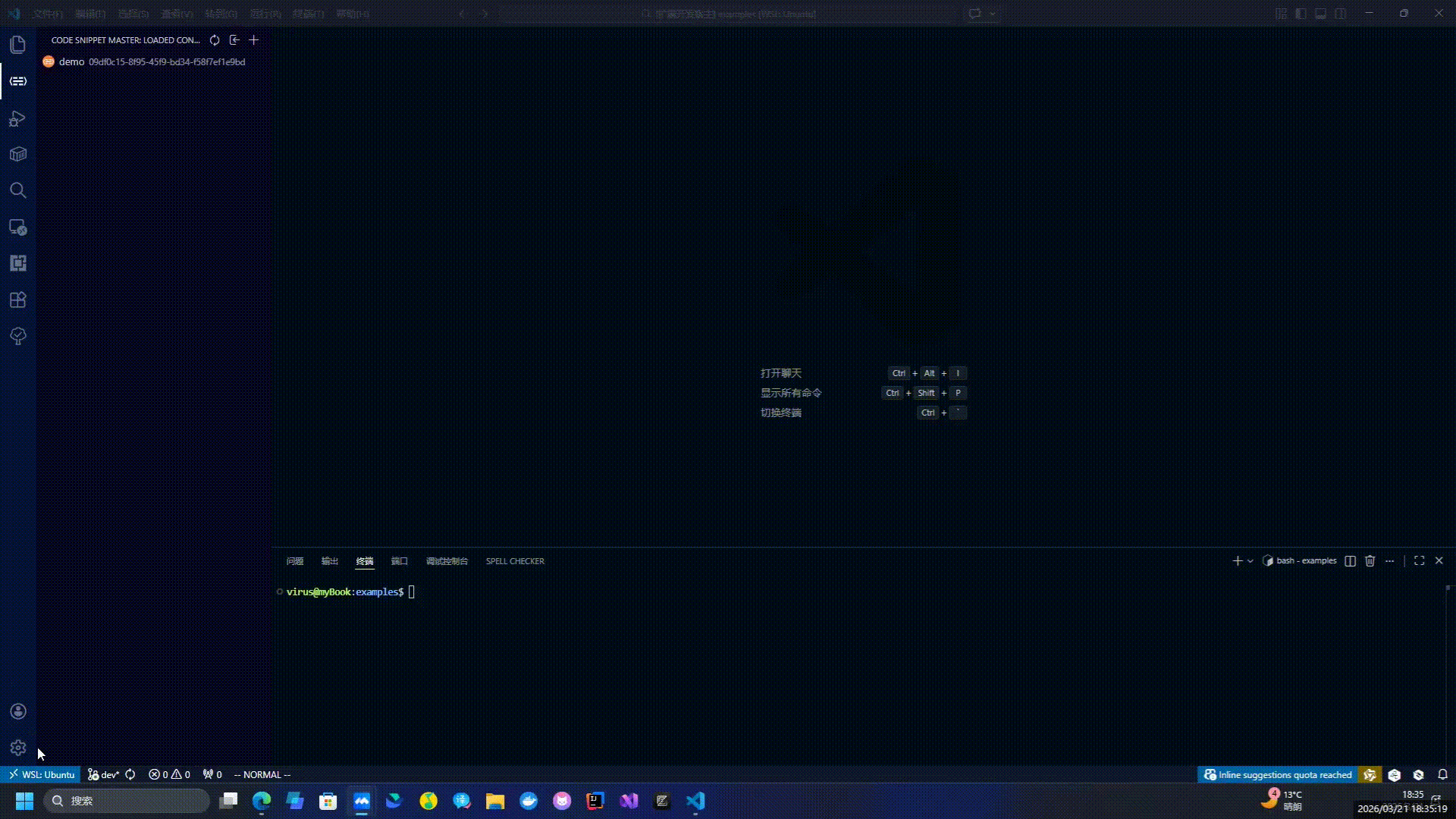 Code Snippet Master Introduction Better snippet management instead of the built-in one. This extension is available in VSCode, Cursor, Windsurf, Trae, CodeBuddy and Qoder. PS: Felix provides the idea of this product, including tree view and xml config format. Examples Load a snippet config. Import a code-snippets config. Reload a snippet Config. Sync snippet configs from other devices.