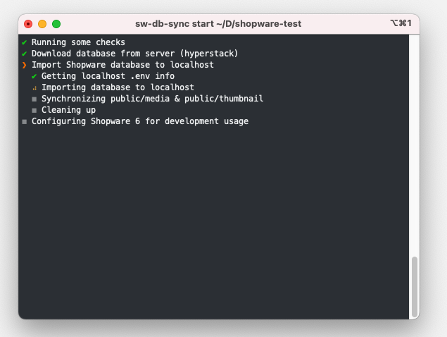 This tool downloads clean/stripped or full Shopware 6 databases & media images over a SSH connection, imports and configures it for development purposes. Have a fully configurated production or staging environment on your local machine within minutes. Making life a little bit easier.
