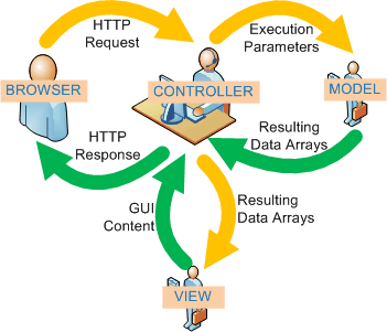 Le Controller (le contrôleur) fait le lien entre le Model et la View. Il s'occupe à chercher les bonnes données en utilisant les bons models pour passer à la view.