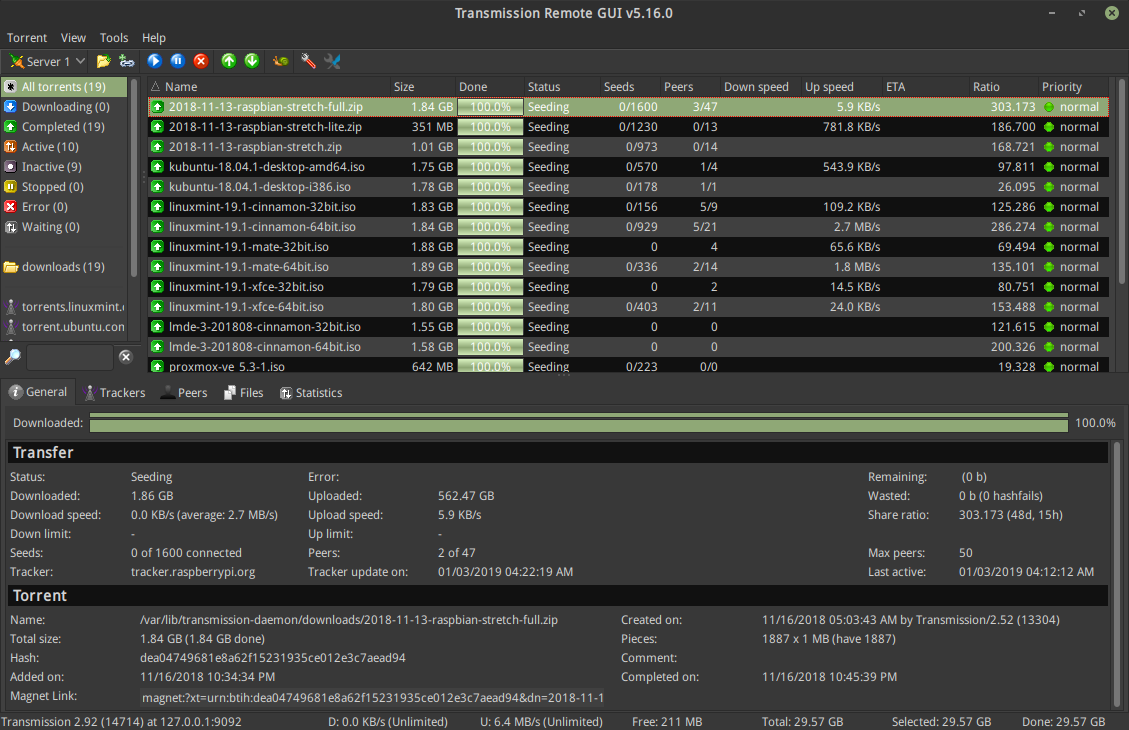 Transmission Remote GUI is feature rich cross platform front-end to remotely control Transmission daemon via its RPC protocol. It is faster and has more functionality than builtin Transmission web interface.