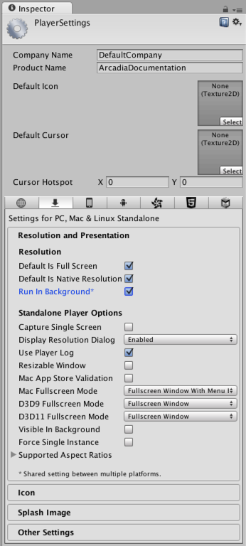By default, Unity is configured in a way that does not allow Arcadia to run well.