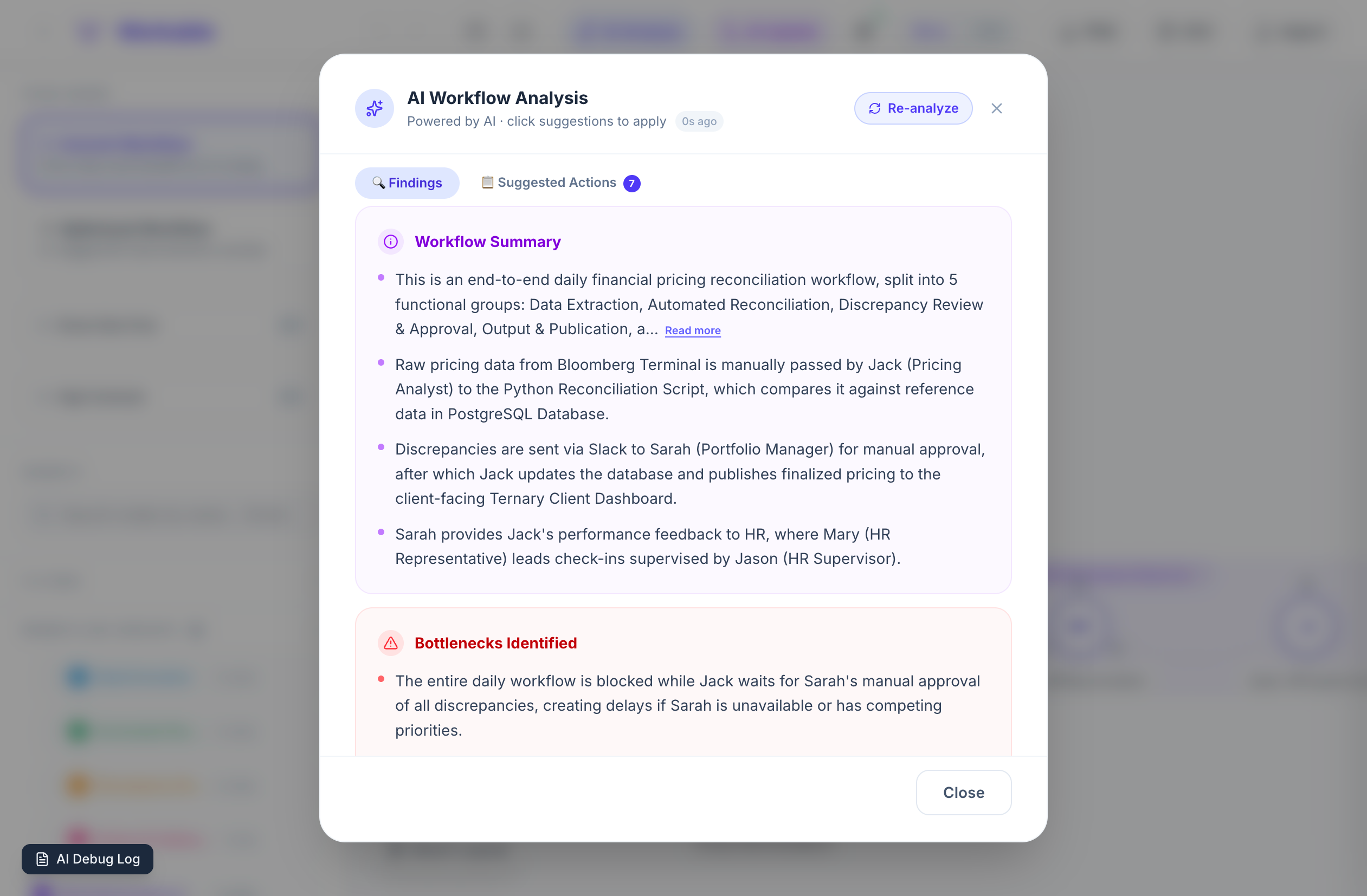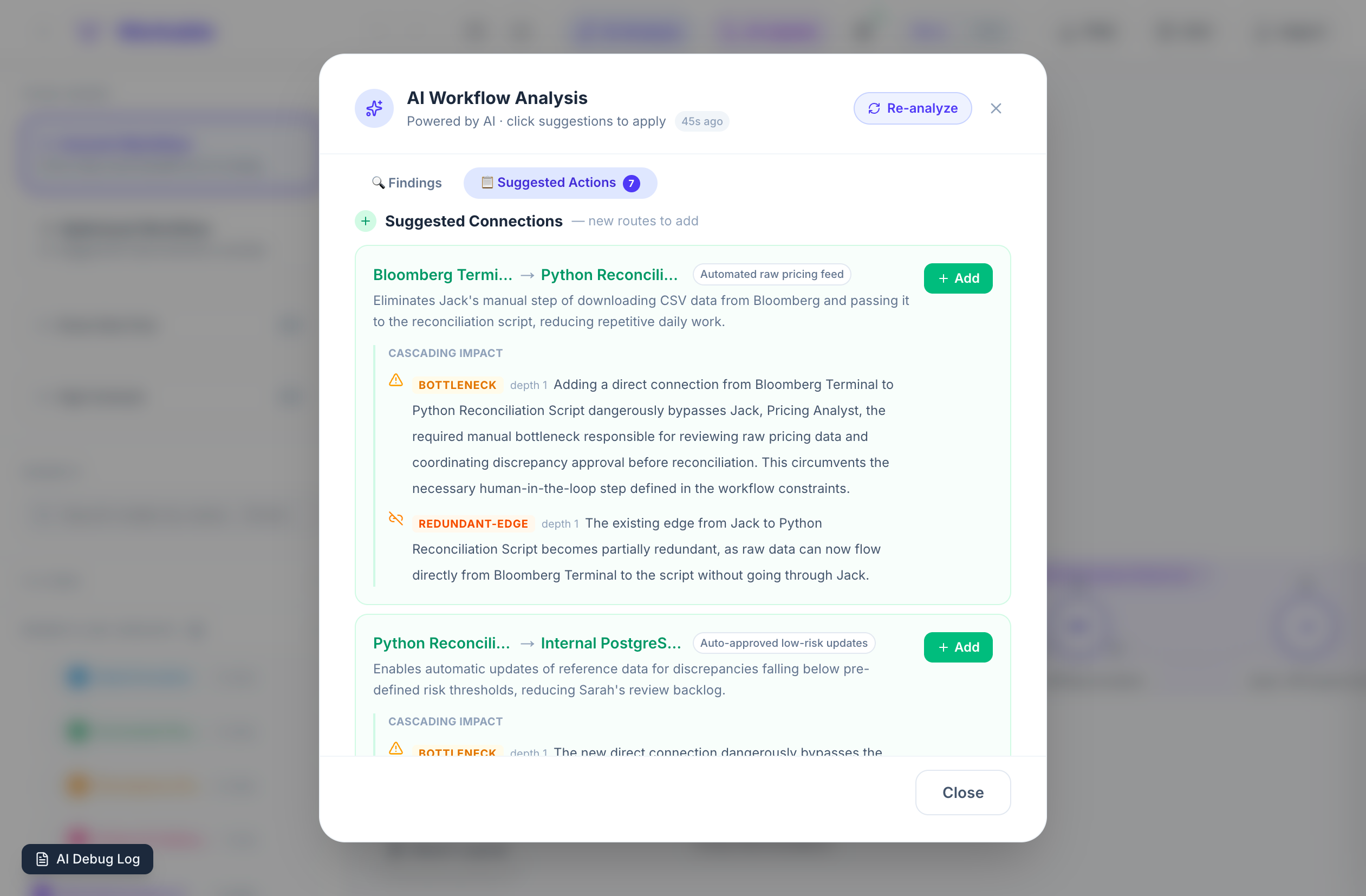 - The AI identifies "single points of failure" and structural risks in your workflow