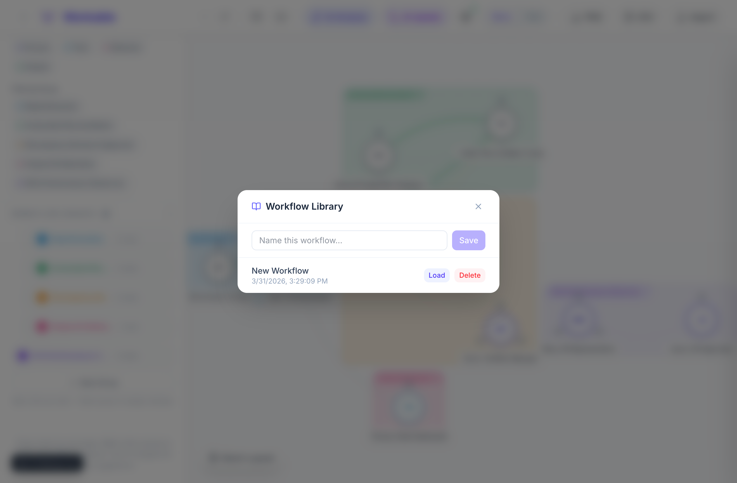 - Load back any saved workflow instantly, or delete old versions