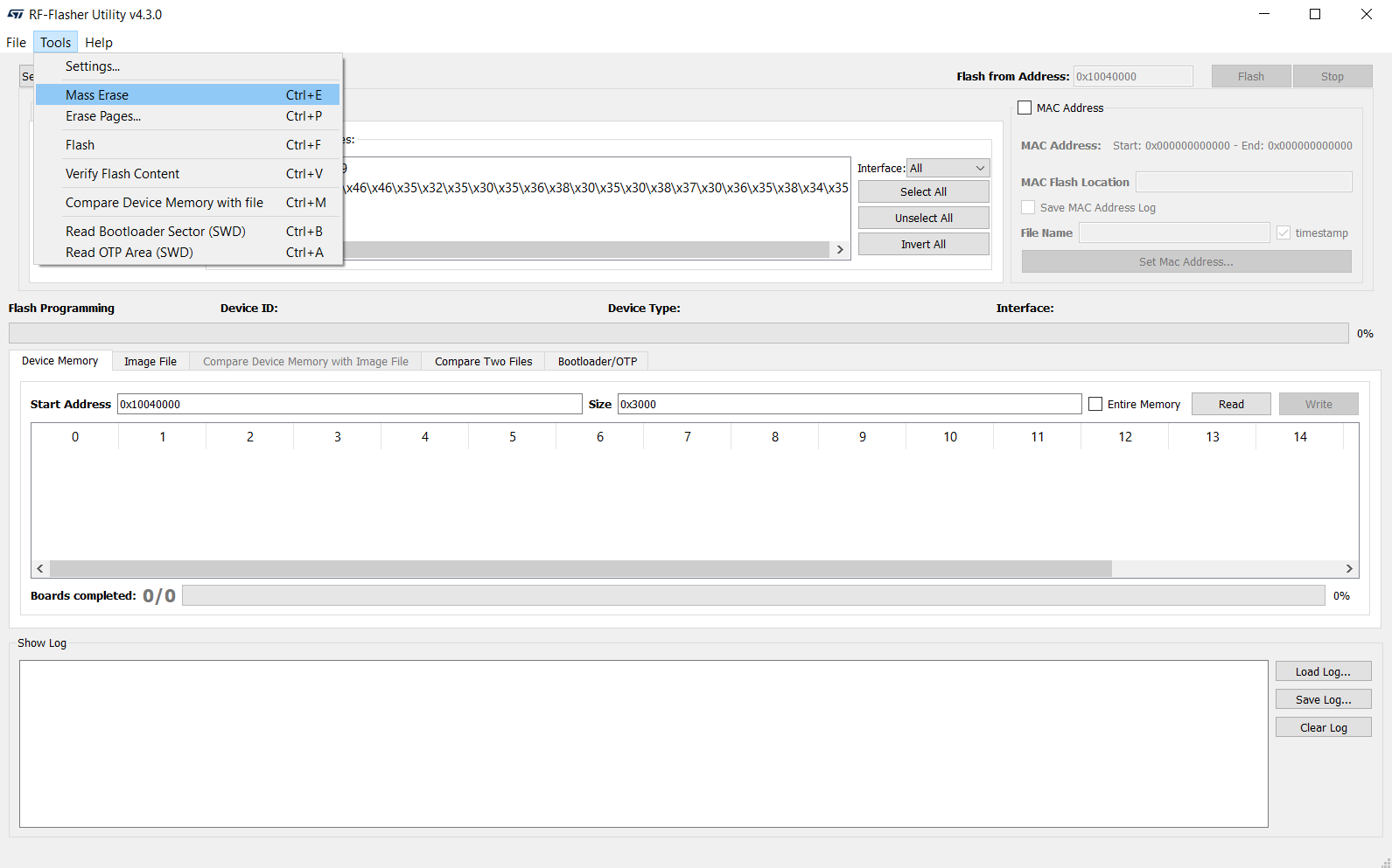 First of all, install the RF-Flasher Utility and open it, then select the SWD tab:
