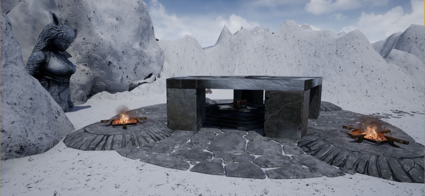 - Frozen Lake and Waterfall - We created a custom material for the frozen lake and waterfall using Panner.