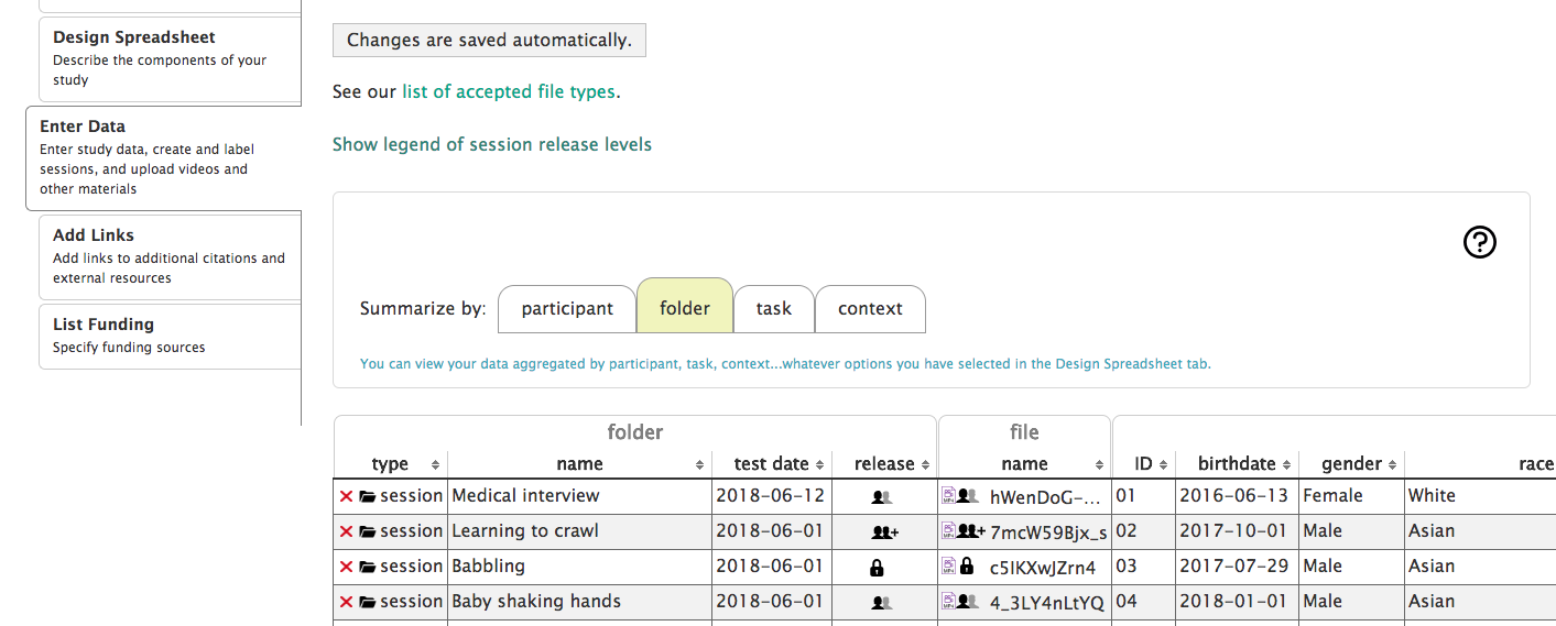 Accelerate the pace of sharing and reusing recorded, annotated video, to increase the pace of analysis and discovery in behaviorial science. Sharing restricted videos without burdening researchers heavily requires a sophisticated, yet simple, approach to entering release level information and authorizing networks of users to datasets. It also requires convenient mechanisms for uploading large collections of video files. It requires allowing for a very flexible model of meta-data to allow a large variety of attributes to be attached to a given dataset.