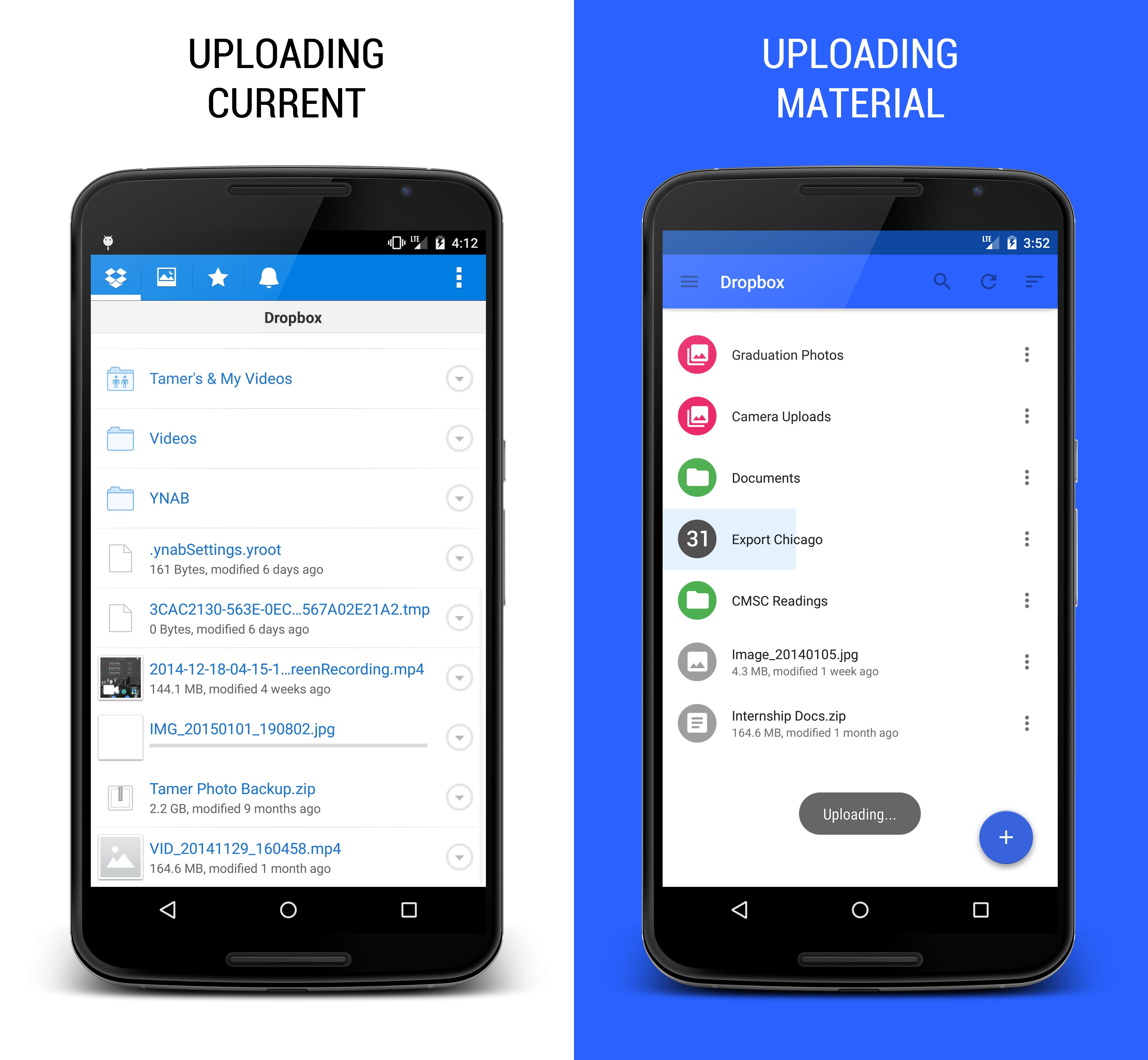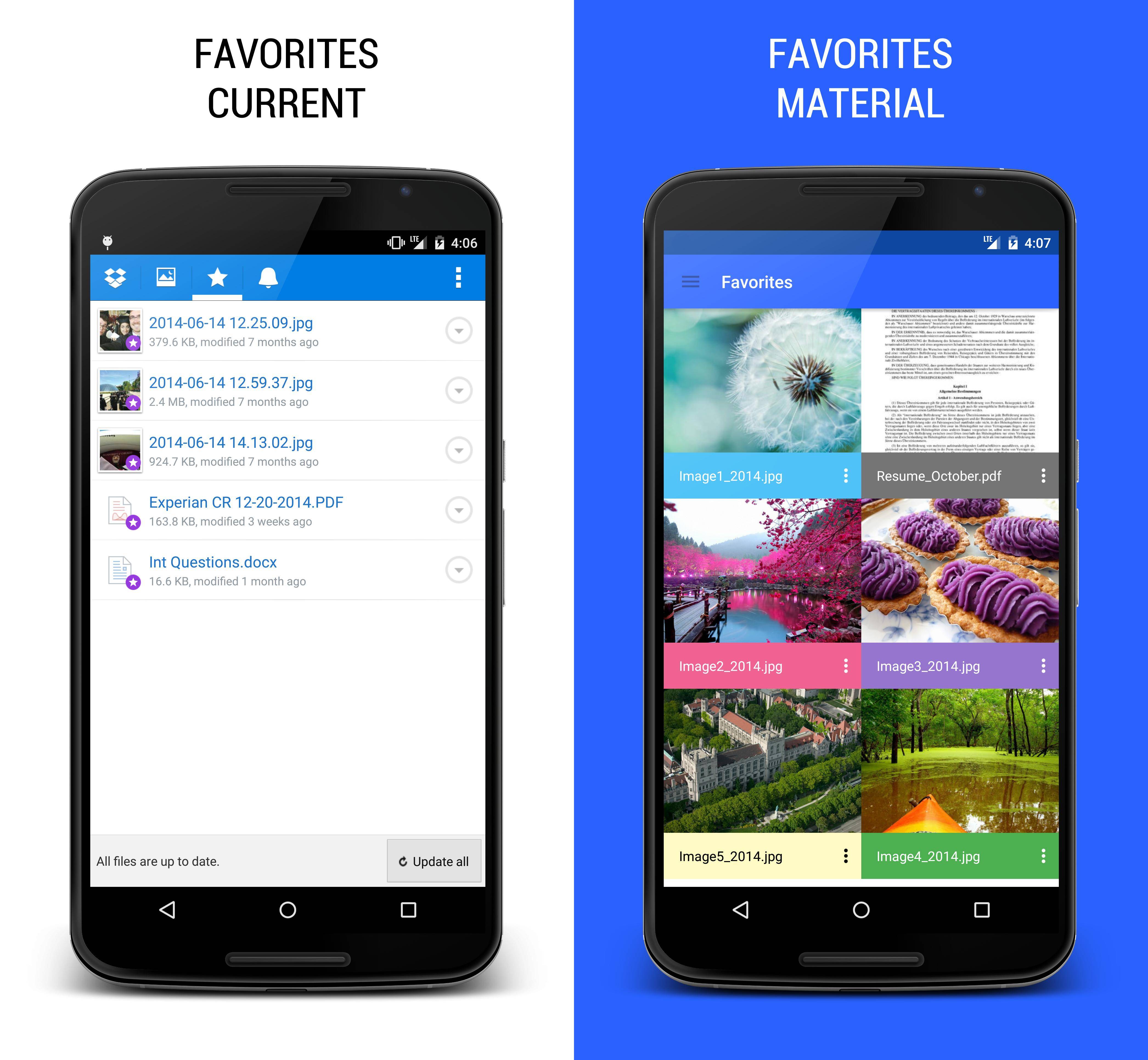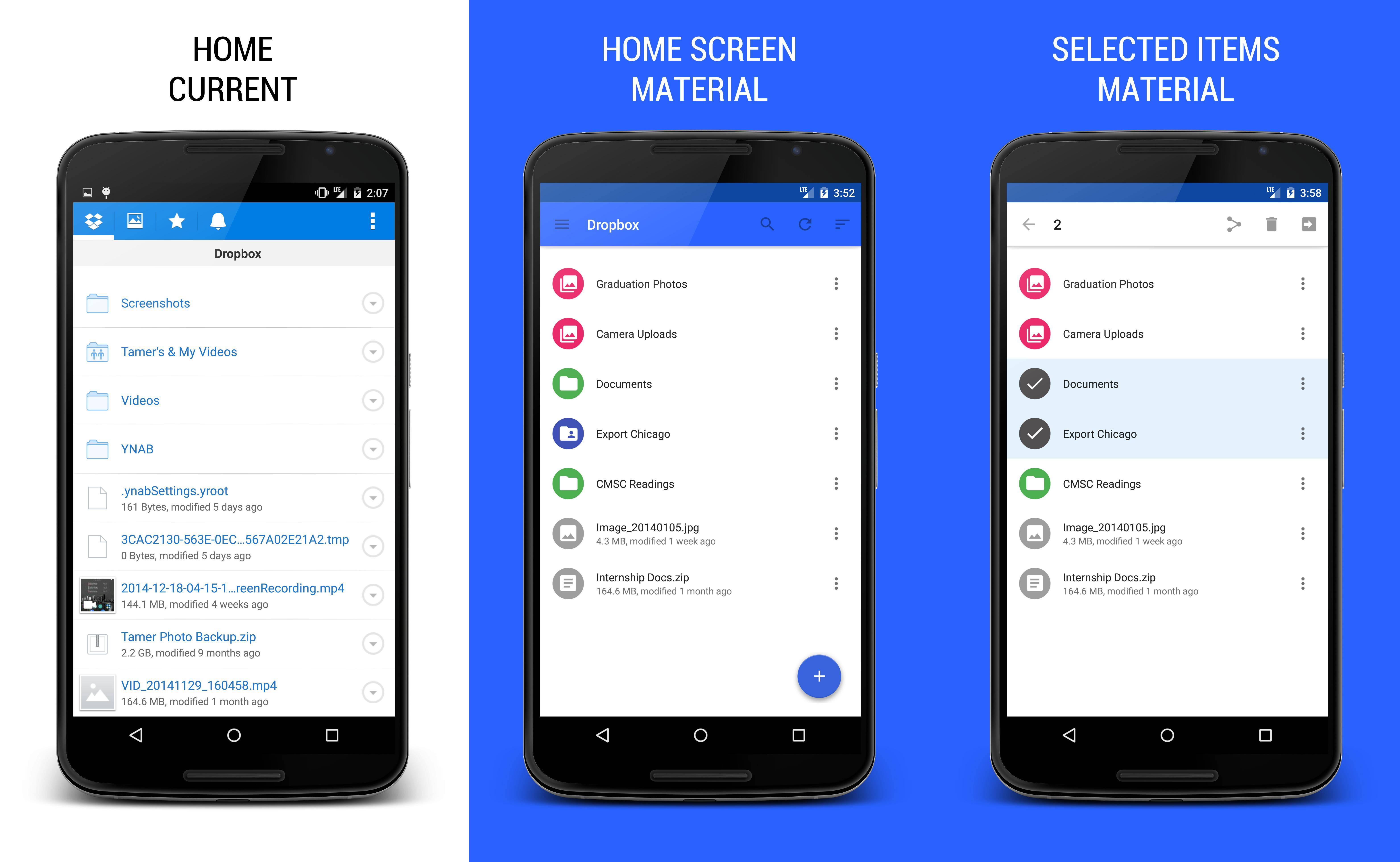 Goal: Envision the appearance and behavior of a refreshed Dropbox app using Google's Material Design