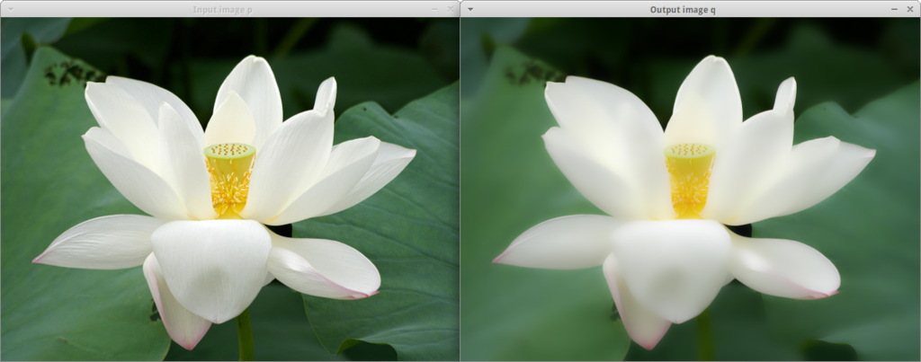 GuidedFilter is an implementation of the Guided Image Filtering algorithm in OpenCL. The Guided Filter is an image filter with many applications, one of which is edge-preserving smoothing. It has a non-approximate algorithm which is O(1) in the filter window size. It has excellent performance characteristics which make it a great alternative to the popular Bilateral Filter.