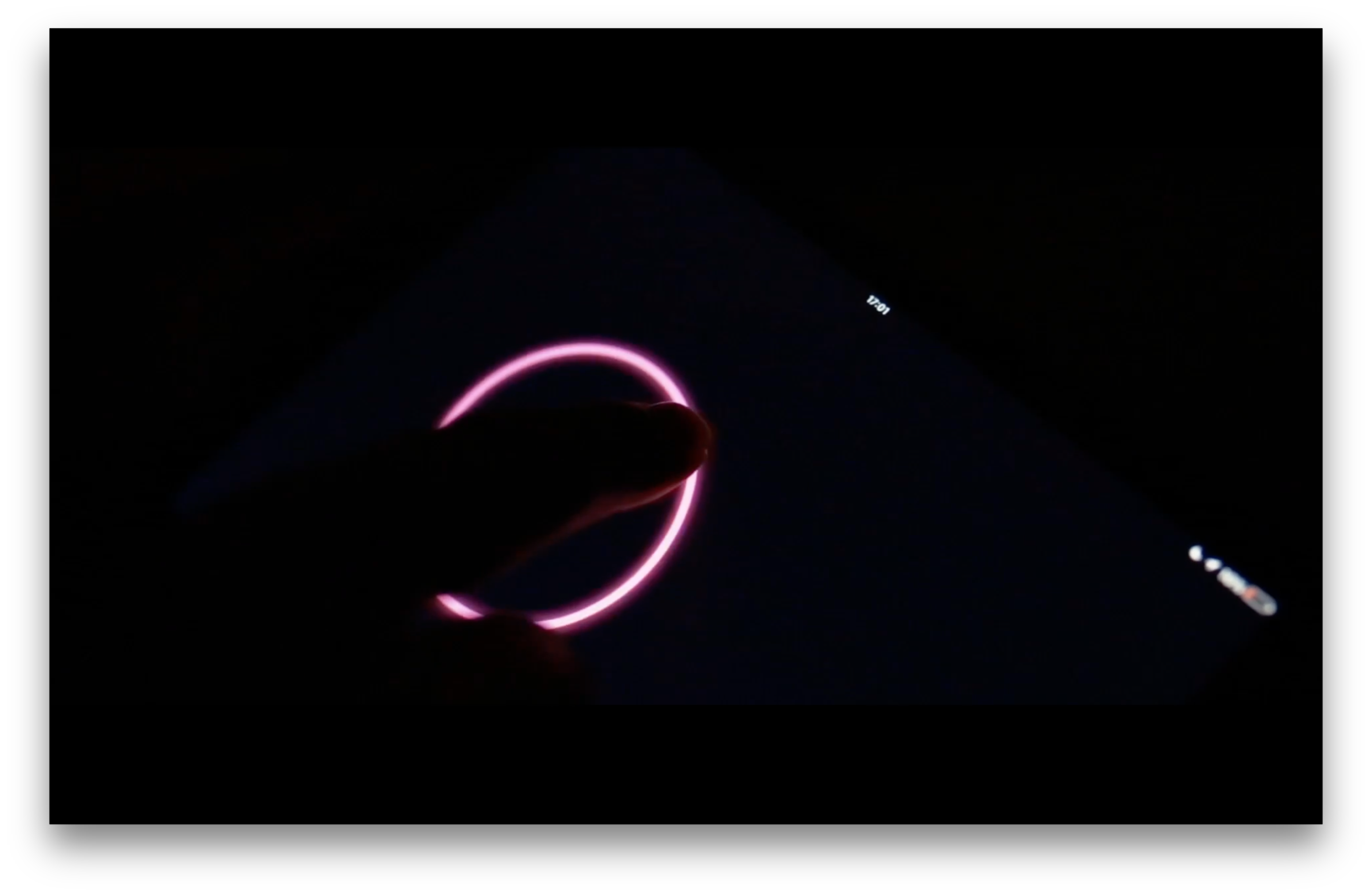 Adding this to the homescreen we could disguise it as a 'native application' and max out our playground to draw on. Drawing is done by pinching to make a circle. Once released it emits a package with the x, y and scale to the socket server, which the other application listened to.