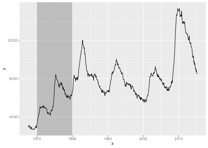 When you use an annotation you want to use as the background, you use that annotation before the real 'data' layers. For example, to highlight the 70s you can use: