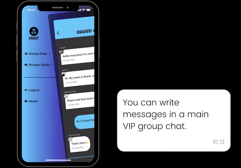 A Flutter application designed for the iOS, Android, desktop and web(https://vip-chatt.web.app)