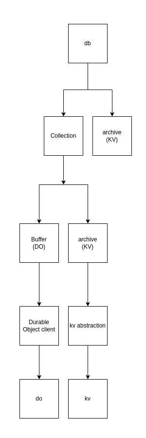 The main feature is the Database, it contains Silos which are either Archives or Collections. Archives implement the KV abstraction and ultimately the Cloudflare KV.