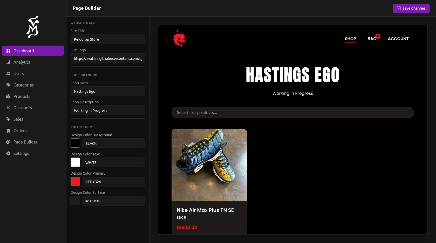 - Page Designs: The page themes allow you to change your store designs to how you want your store to look like.