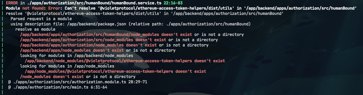 yarn add @violetprotocol/ethereum-access-tokenI am not able to use the package without manually going into the dist folder like so:But by doing the aforementioned, I receive the following: