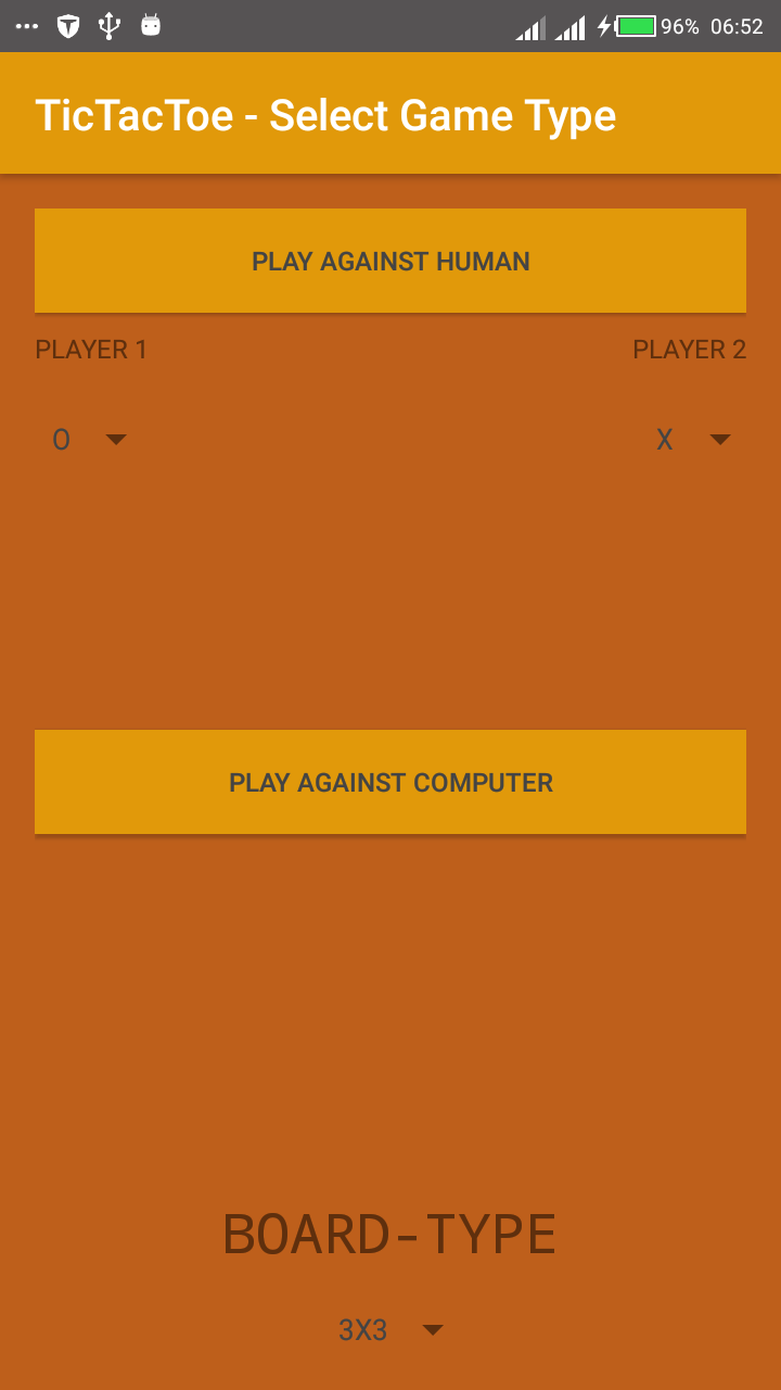 This is the very basic implementation of the popular game was developed using Android Studio. It features two game modes – Play Against Human and Play Against Computer.