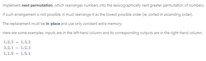 再比如 123,其他排列有 132,213,231,312,321,从小到大排列就是 123 132 213 231 312 321,那么我们要找的就是 132。