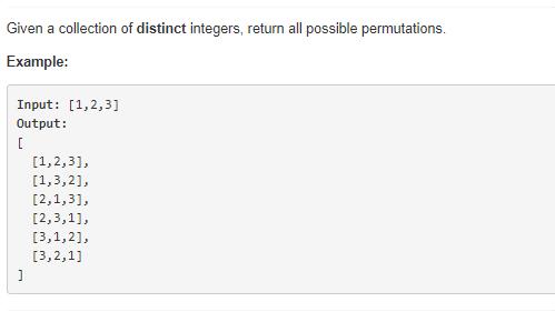 如果再加 1 个数字 3,[ 1 2 3 ] 该怎么办呢?同样的,我们只需要在上边的所有情况里的空隙里插入数字 3 就行啦。例如 [ 2 1 ] 在左边,中间,右边插入 3 ,变成 3 2 1,2 3 1,2 1 3。同理,1 2 在左边,中间,右边插入 3,变成 3 1 2,1 3 2,1 2 3,所以最后的结果就是 [ [ 3 2 1],[ 2 3 1],[ 2 1 3 ], [ 3 1 2 ],[ 1 3 2 ],[ 1 2 3 ] ]。