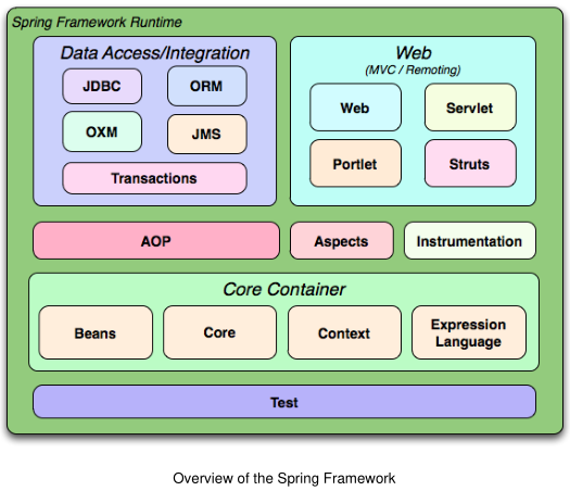 - Data Access/Integration层包含有JDBC、ORM、OXM、JMS和Transaction模块。