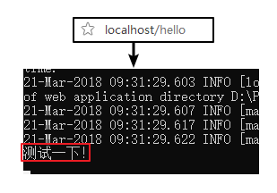 在浏览器中输入 localhost/hello,回车,即可在 Tomcat 服务器上看到相关信息,至此第一个 Servlet 就编写成功了