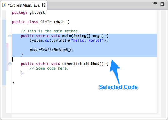 Some part of code can be selected within the Eclipse code editor, which programmers naturally do, for example when copying or deleting a block of code.