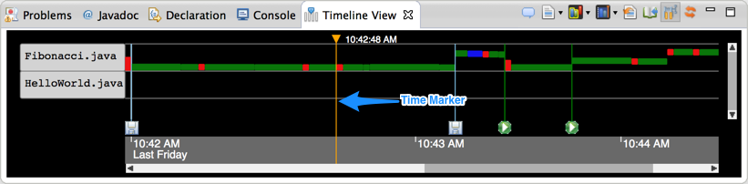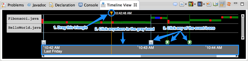 You can move the marker by (1) dragging the top triangle of the marker, (2) clicking anywhere in the gray timeband area at the bottom, or (3) clicking any of the event icons displayed in the timeline.