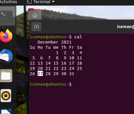 Try it now! Use your keyboard and type some commands such as date, cal, pwd or ls followed by the ENTER key. The results are looking like the following images for your entered commands:
