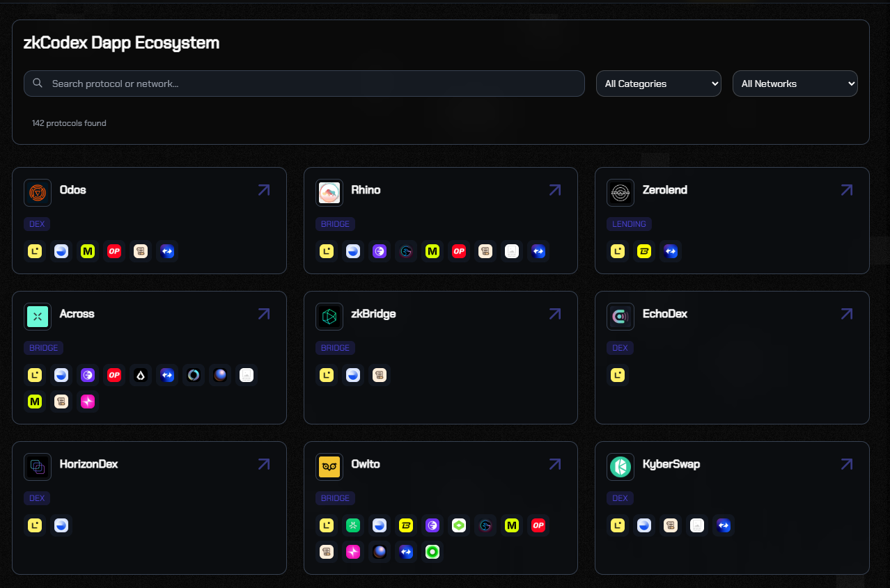 View the dApps listed in zkCodex here.