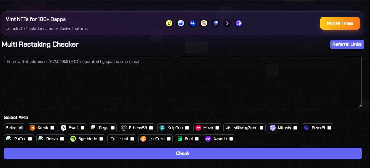 Track your points across supported dapps. Monitors your restaking activities and shows earned points.