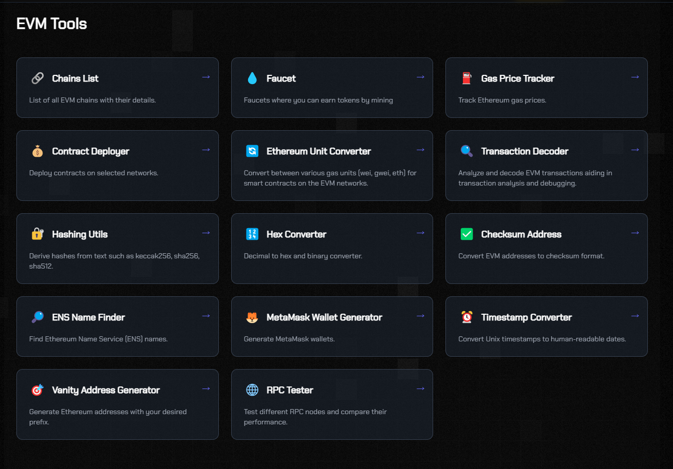 - EVM Utilities: Access essential tools for blockchain operations