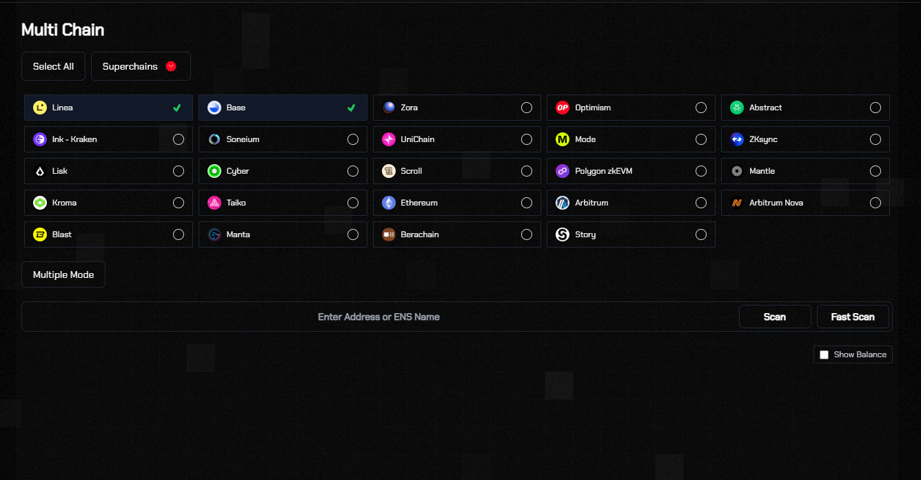 Select from over 25+ chains to scan your wallet from a single location.